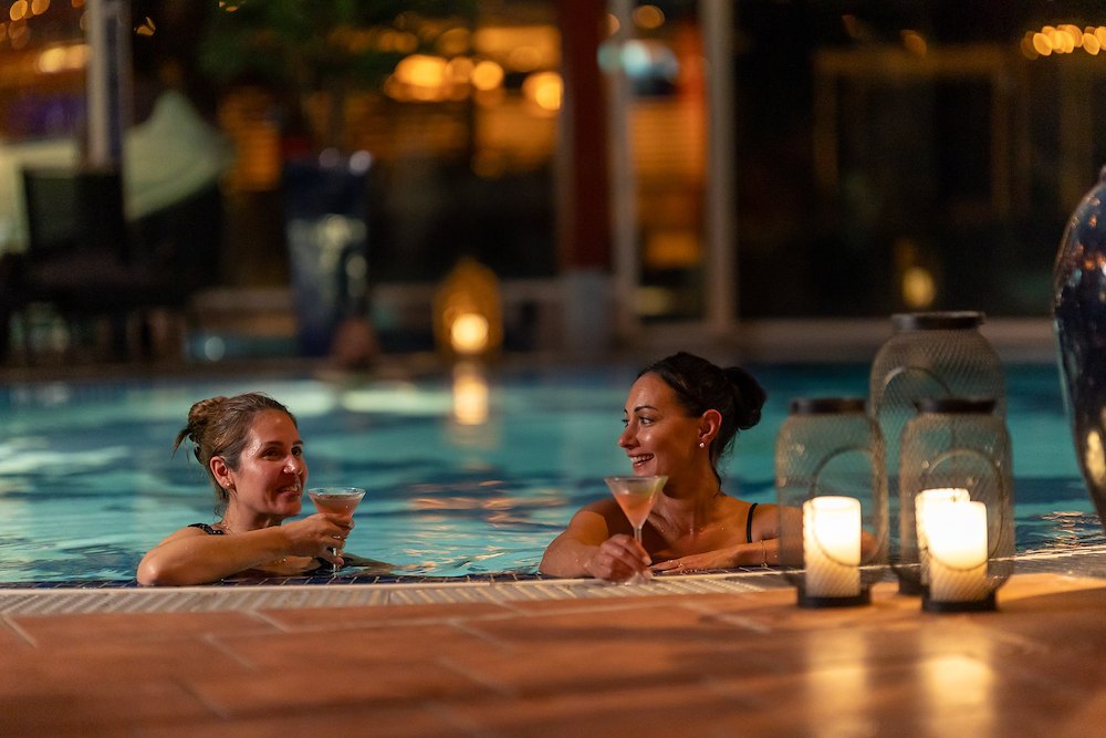 Upplev Särö Källa Spa under kvällstid & avsluta dagen på bästa sätt. Du har tillgång till hela relaxavdelningen med en 37 grader varm pool samt en mindre utedel, relaxpool, fotbad, IR-bastu, ångbad, bastu, is & kallduschar, spaträdgård med uteduschar. Badrock och poolhandduk ingår. Fri tillgång till spaprodukter, scruber, badsalter, ansiktsmasker etc. Det ingår även kaffe, te och färskt skuren frukt. I spabaren kan du beställa något dricka.